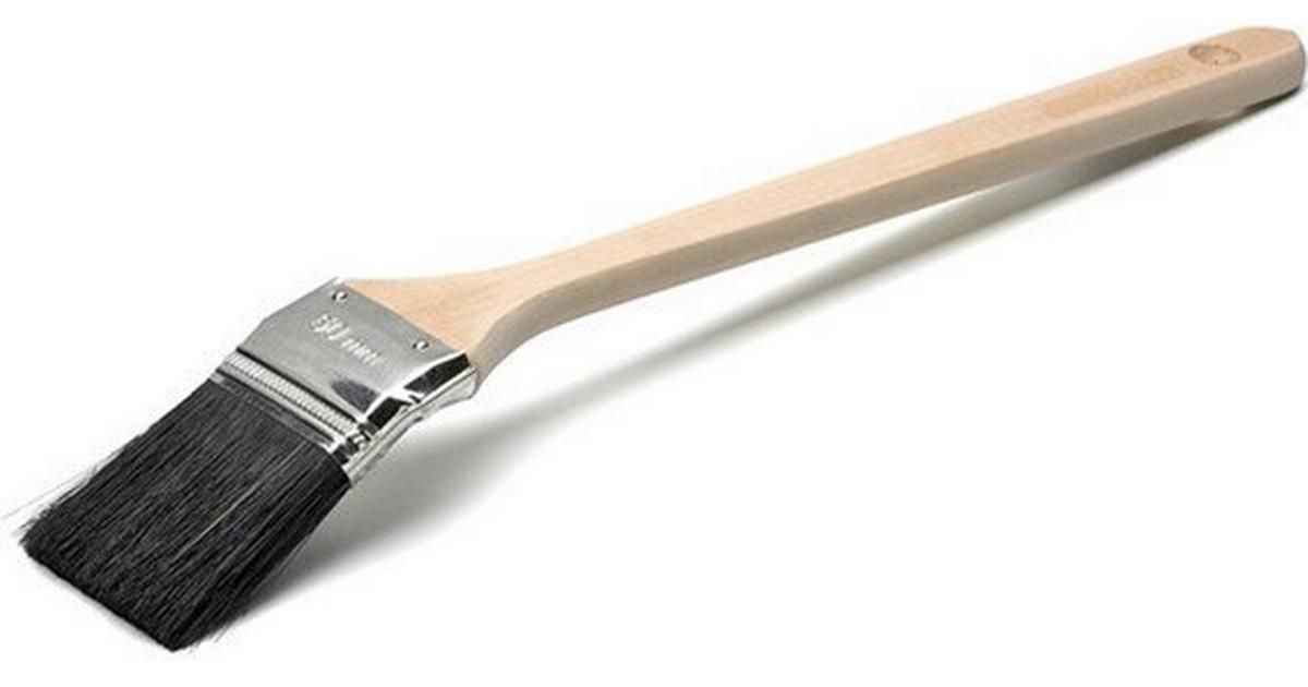 Dlhý zahnutý štetec s kvalitnými prírodnými štetinami.